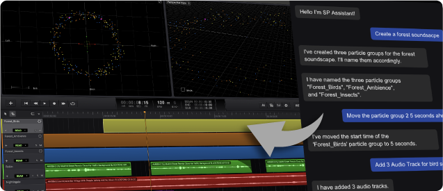 - No Generative Audio: Sound Particles' AI Assistant is here to serve you — not to create for you. You give the instructions, and it executes them with precision.